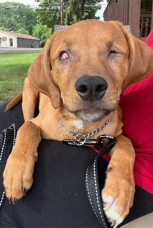 Notes:  He was born blind and does have eye tissue left in both eyes. He always keeps one eye closed. The other, the vet says, is fine.