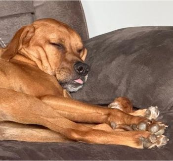 What Sleepy enjoys the most is to sit on the patio with a bone and just listen to everything going on. He is a great companion.